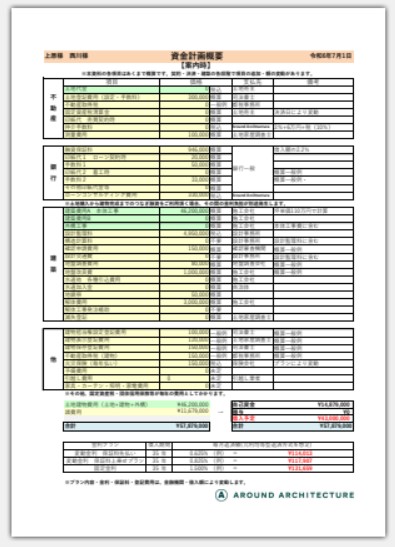 そこで今回は、株式会社アラウンドアーキテクチャーにコンサルティングを依頼。土地の名義整理、二世帯住宅の資金構成、ライフプランに基づく返済シミュレーションなどを、設計が始まる前の段階から丁寧に整理していただきました。
