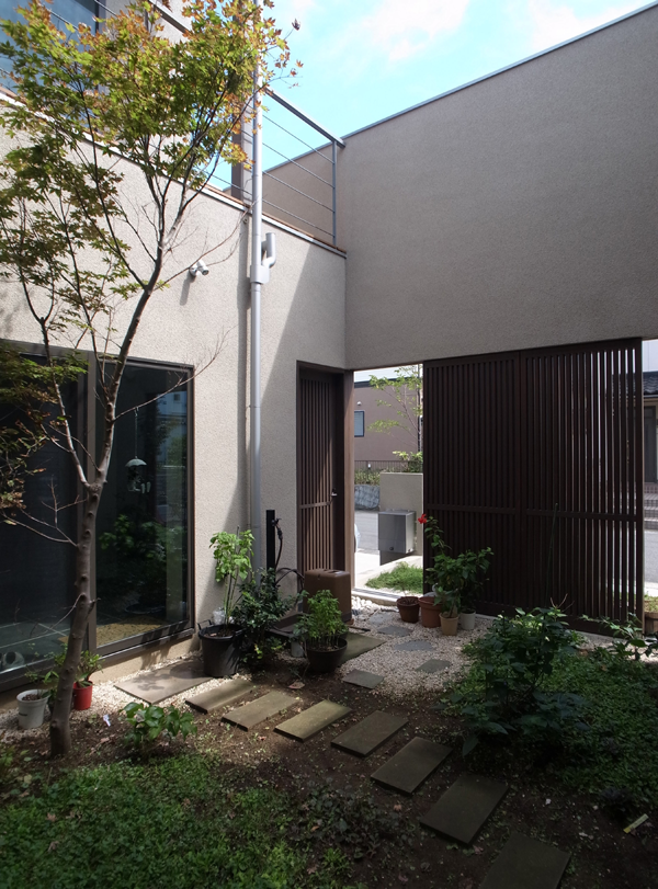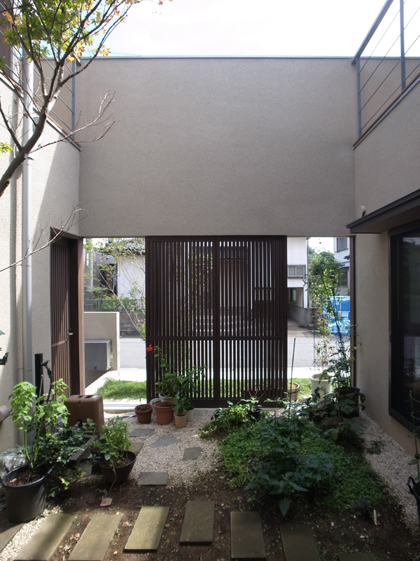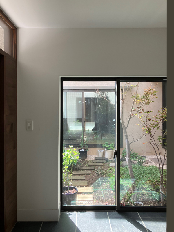 掃き出し窓からの中庭の風景。