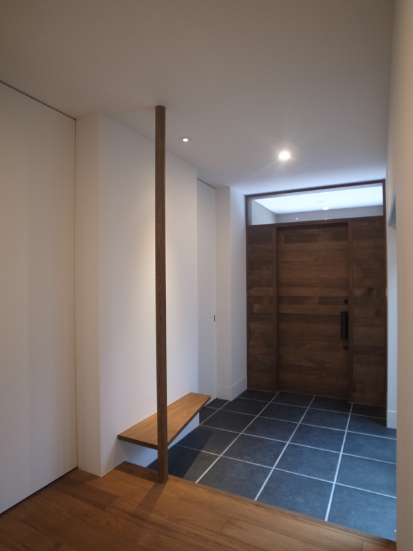 玄関扉は木板張りの特注製作です。