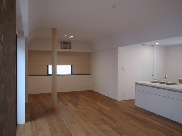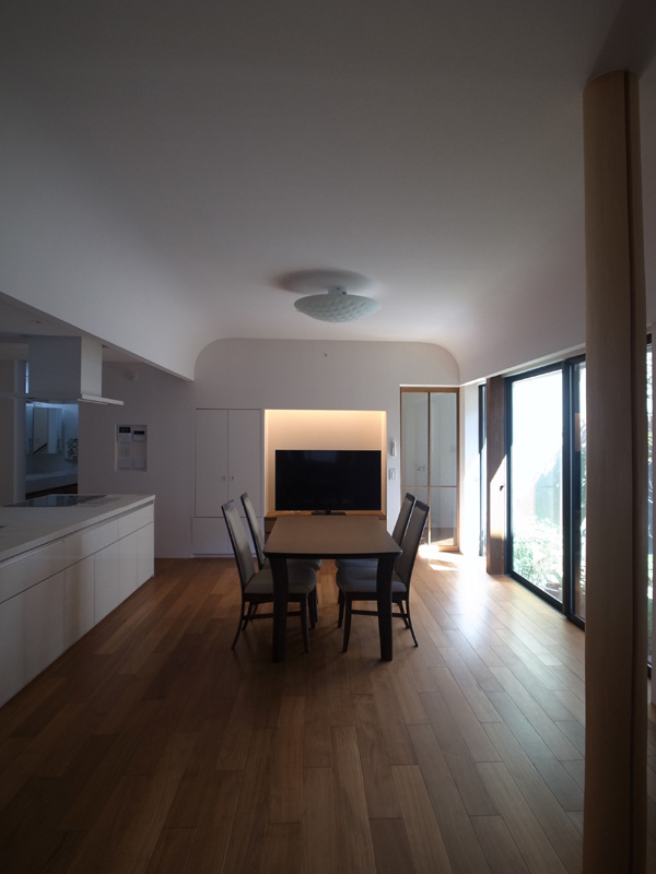 天井面と壁面がゆるやかな曲線でつながり、柔らかな光の陰影に包まれます。