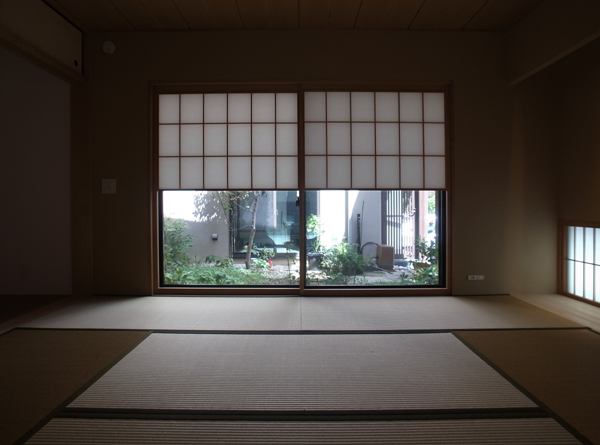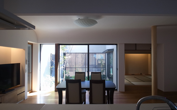 ダイニング・リビングの続き間として、中庭に面して和室を配置。