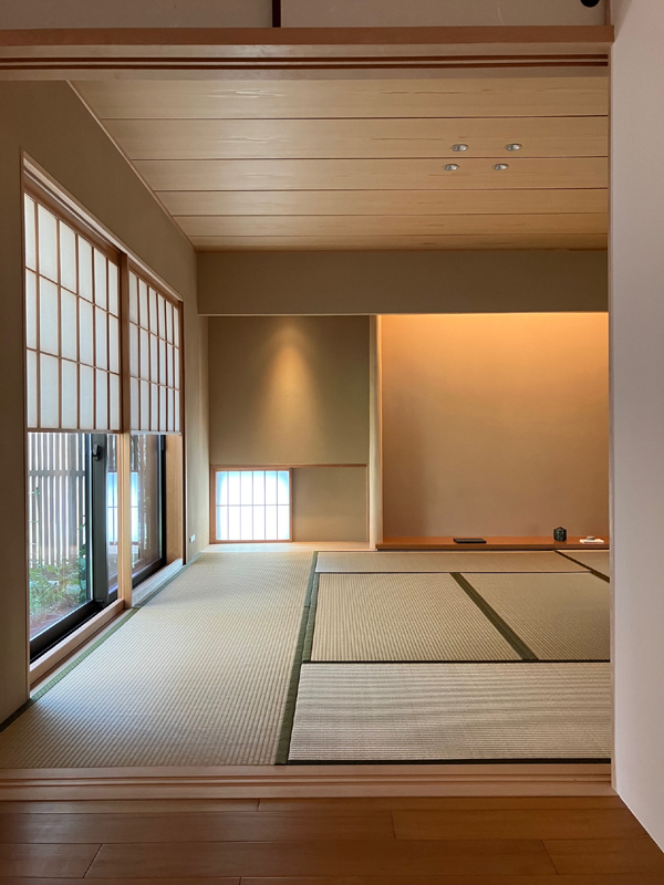 8畳の和室。落ち着きのある和の空間で、施主の趣味であるお茶やお琴をたしなむ広間としても使われます。