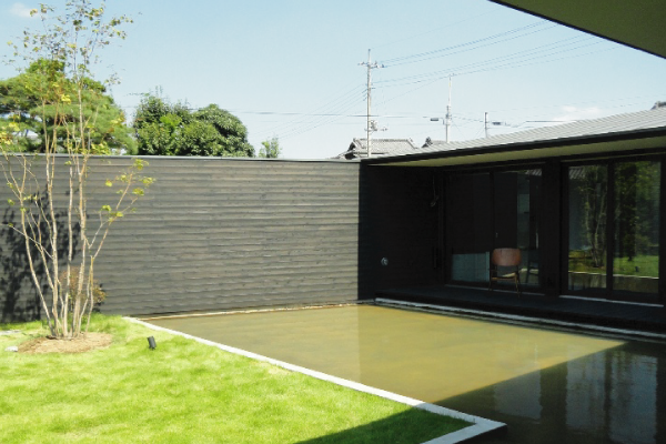 くみ上げた地下水を水盤に張ることにより、その上をわたる風が室内外を循環し、夏でも快適に過ごせます。
