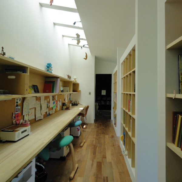 LDKと主寝室の間にある通路スペースをスタディーコーナーとしてます。